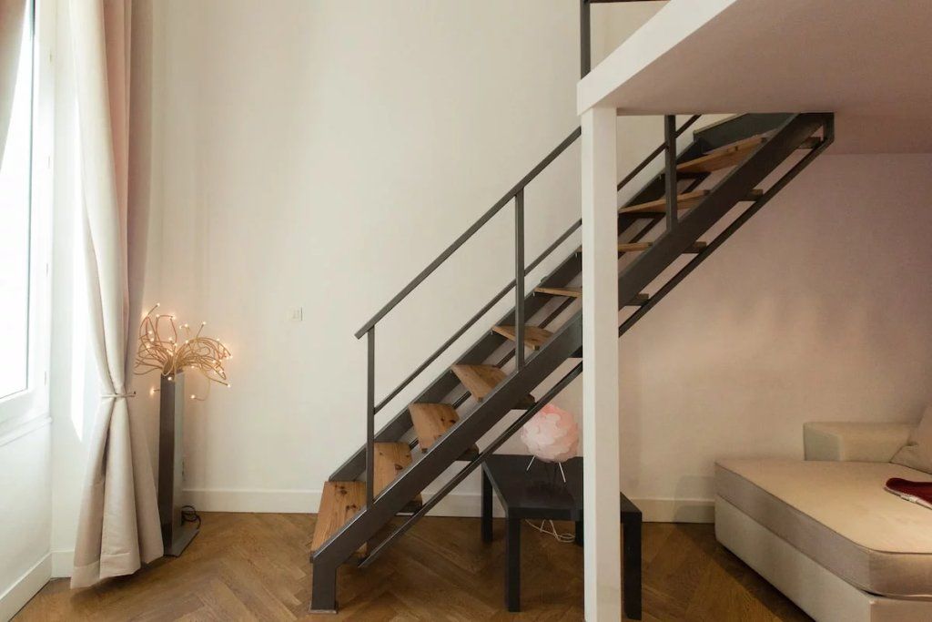 Located in a listed historic building, this studio apartment offers a living space of 37 m², plus a 10 m² mezzanine.