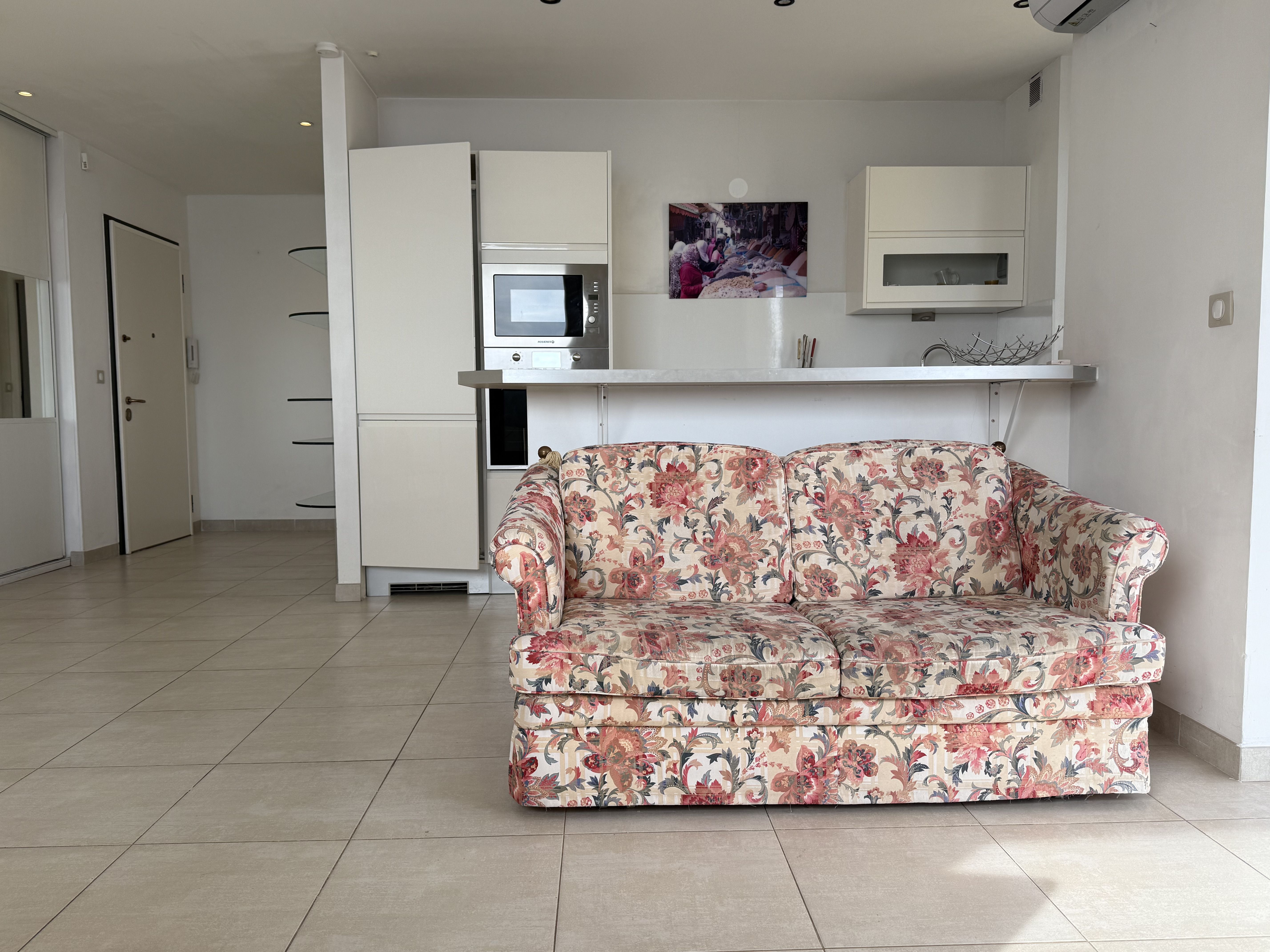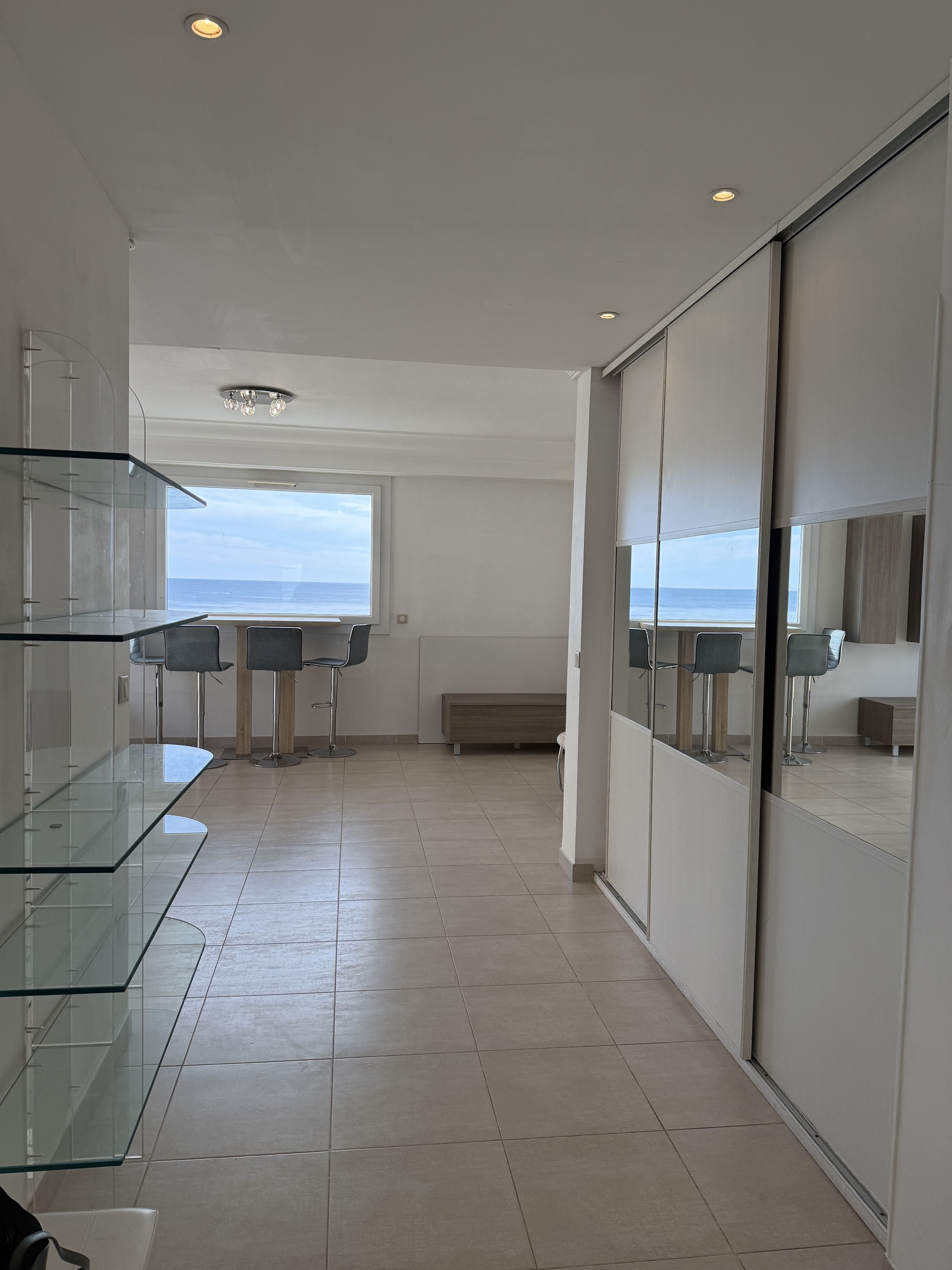 This spacious 3-room apartment, with a surface area of 72 m², consists of an entrance hall, a living room with a window providing an enchanting sea view, and an open-plan kitchen. There is also a balcony of approximately 4 m² with a lateral sea view.