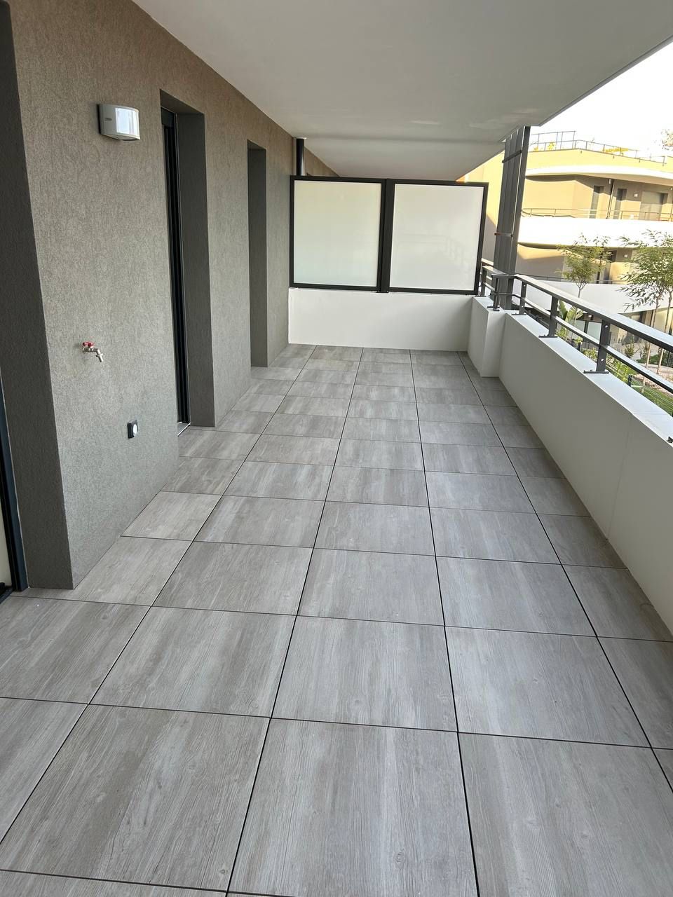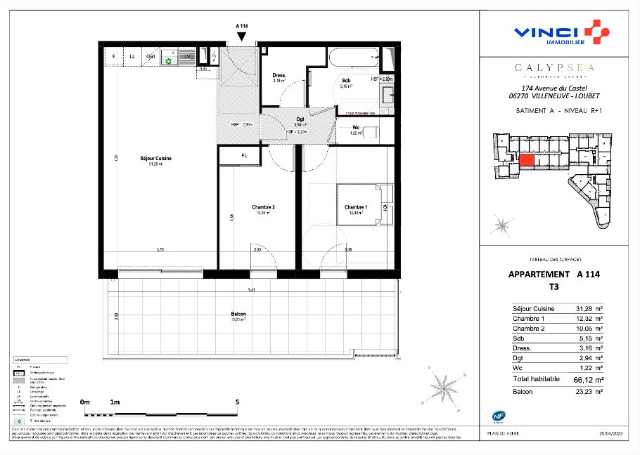 open onto a large 23 m² balcony with pleasant views of the park and the sea.